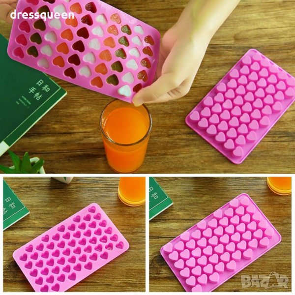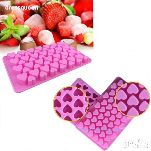 Подходящ за желирани, шоколадови, мармелоу и други бонбони. Формата е подходяща и за ледени сърчица. Изработена от висококачествен силикон с незалепващо покритие, устойчива на плодови киселини и други химични съединения. Издържа на температура от – 50 до 230 °С
