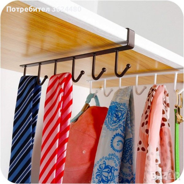 Универсален органайзер за закачане на чаши и прибори с 6 куки - 1 брой