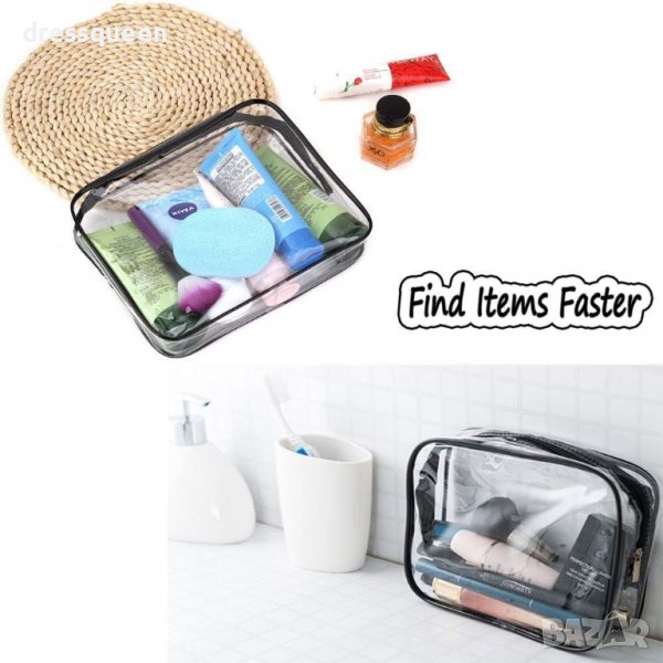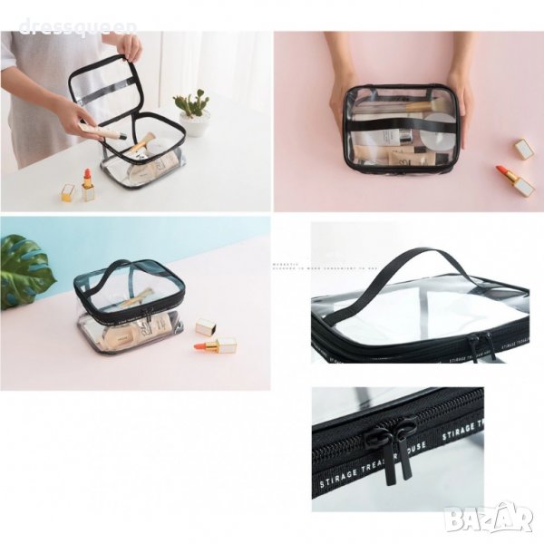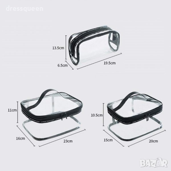 Комплект 3 броя органайзери за козметика за пътуване - прозрачни