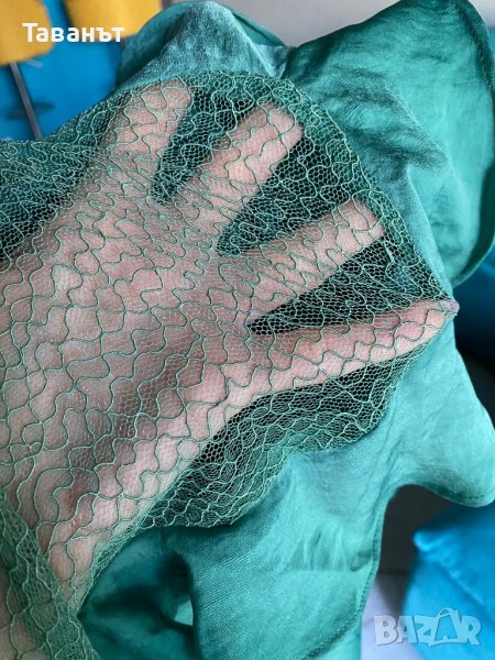 Акцентът е в артистичният кимоно ръкав с фина и много красива дантела и къдрави орнаменти от вискоза.