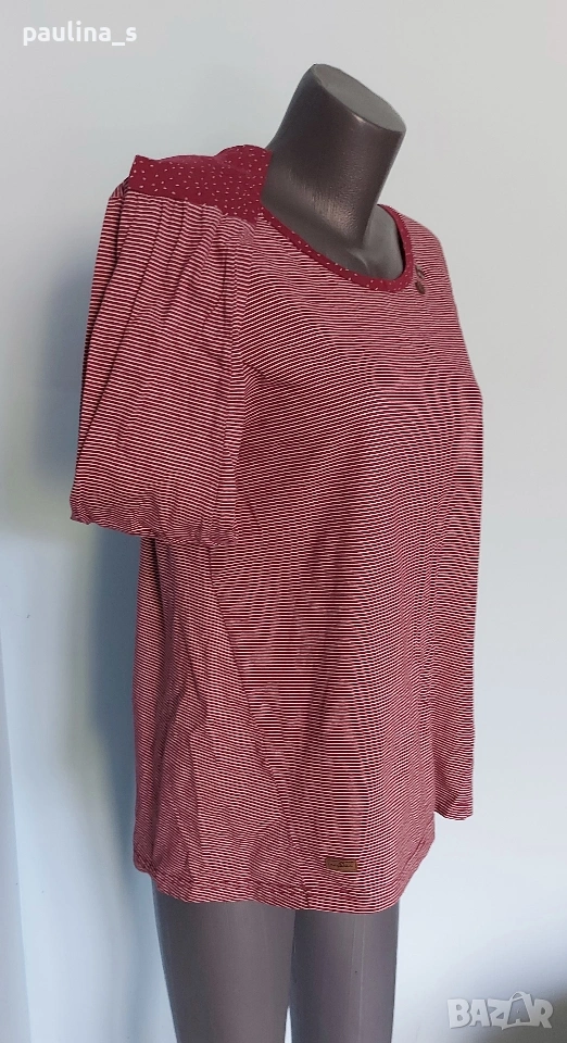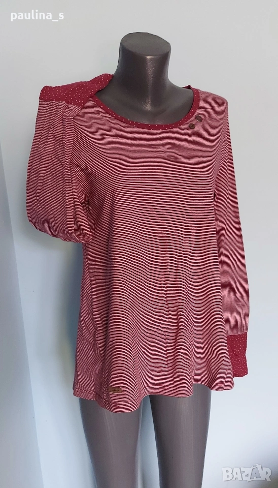 2️⃣. L / 2XL - "ragwear". Цената е крайна, без пазарлъци 20 евро. Маркова туника от двуцветно памучно трико, органичен памук. Брандирана и декорирана с елементи от естествена кожа, копчетата отзад са много шик. Задната част е издължена и преминава отпред в интересна кройка. Ръкавите са с издължени маншети, които могат да се носят по различен начин или подгънати. Изработката е перфектна, брандирана.