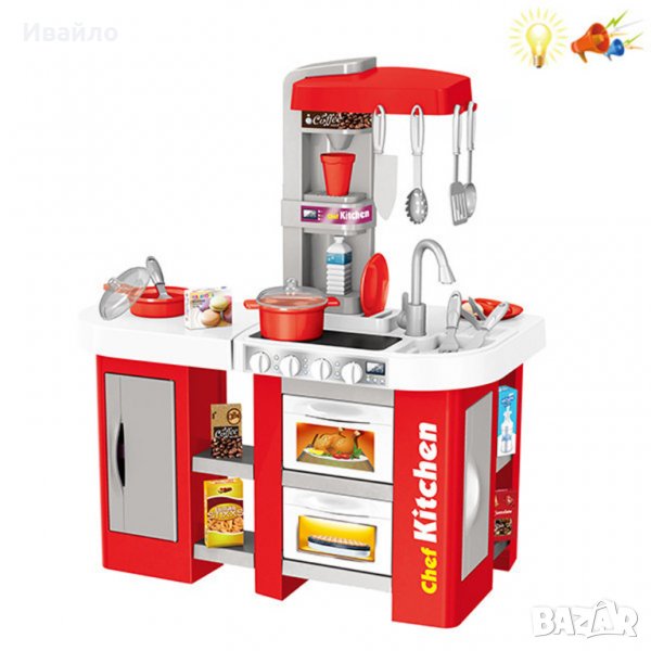 Функции: реална функция течаща вода от крана на мивката, светещи котлони, реалистични звуци на приготвяне на храна, отваряеми врати на фурните и хладилниците.