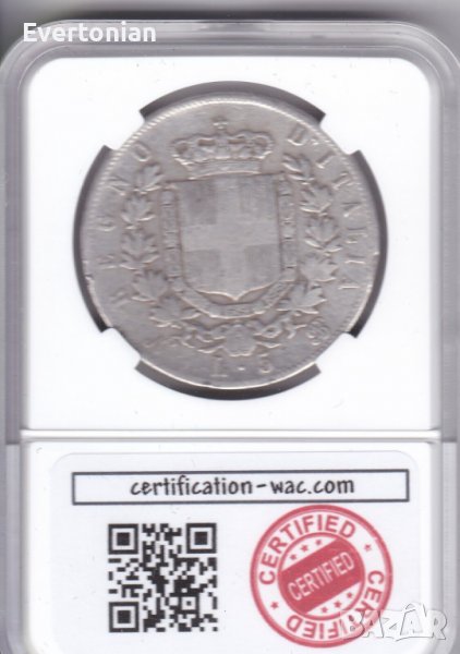 Италия 5 лири 1865 N сребро RR → Обява 37440333
