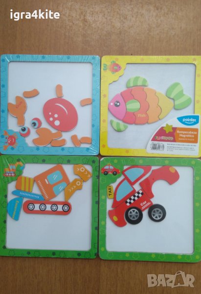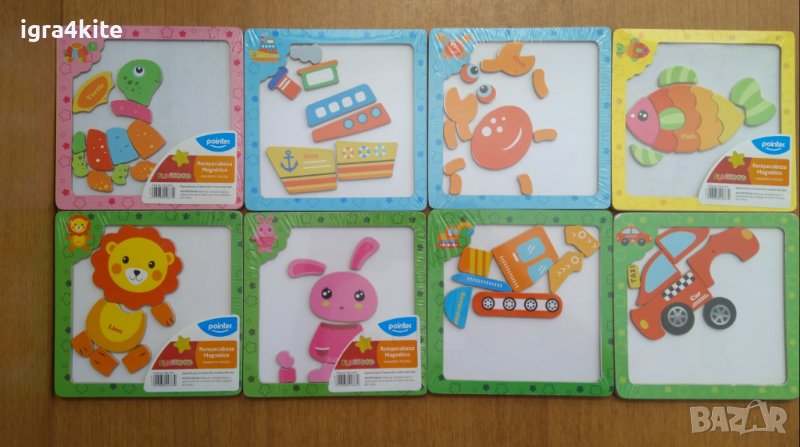 -68 бр. съставни магнити части от дърво за образуване на животни и превозни средства.