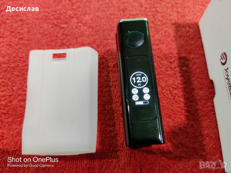 Работи с всички видове изпарители и изпарителни глави. Има всички режими на работа, плюс температурен контрол. Работи с 2 батерии 18 650 които се продават отделно по 15 лв за брой и са модел: Sony VTC6. Водоустойчив със сертификат IP67. Удароустойчив и прахоустойчив.Изпарителят, който е с чисто нова изпарителна глава, се продава отделно за 20 лв. Може разумен бартер за еднобатериен мод или по-скъп.