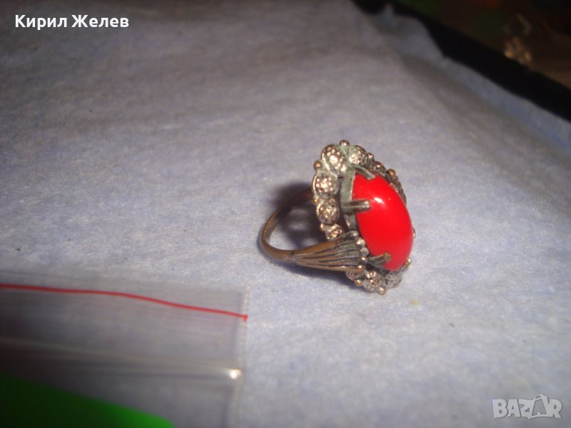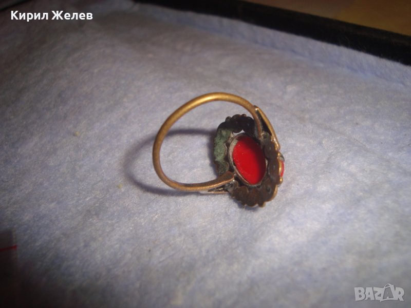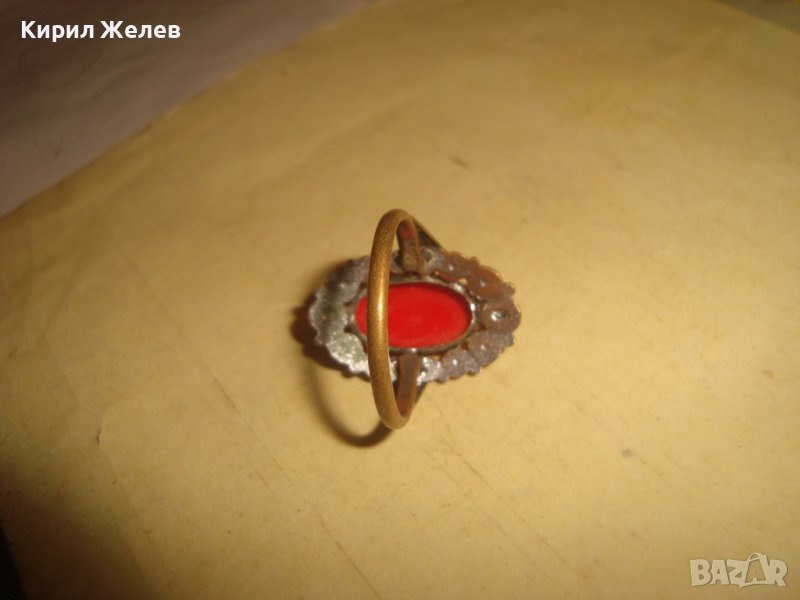 СТАР БРОНЗОВ РЕТРО АР НУВО ФЛОРАЛЕН ПРЪСТЕН с ЧЕРВЕН КАТАЛИН 22337