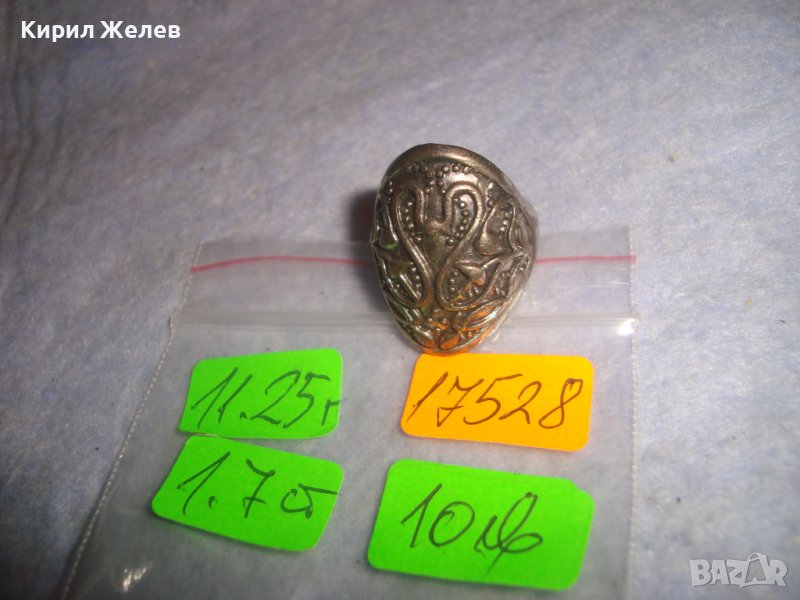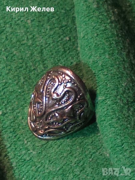 СТАР ФЛОРАЛНО ОРНАМЕНТИРАН МЕСИНГОВ СРЕБРИСТ РЕТРО ВИНТИДЖ ПРЪСТЕН 17528