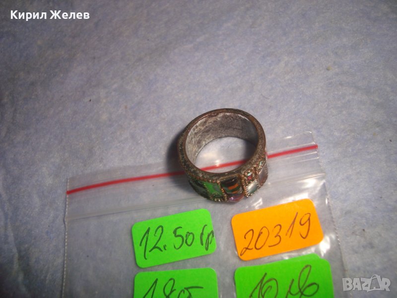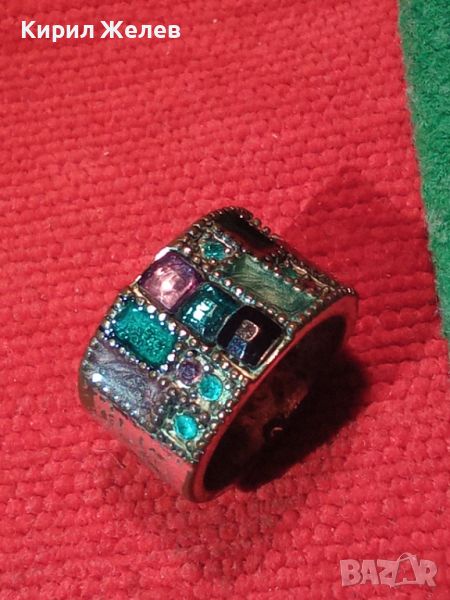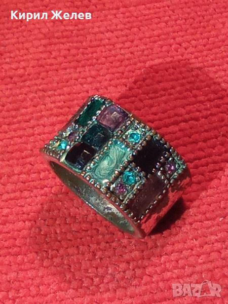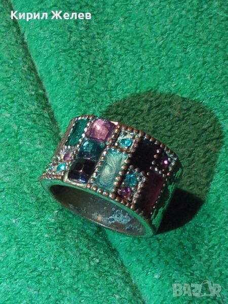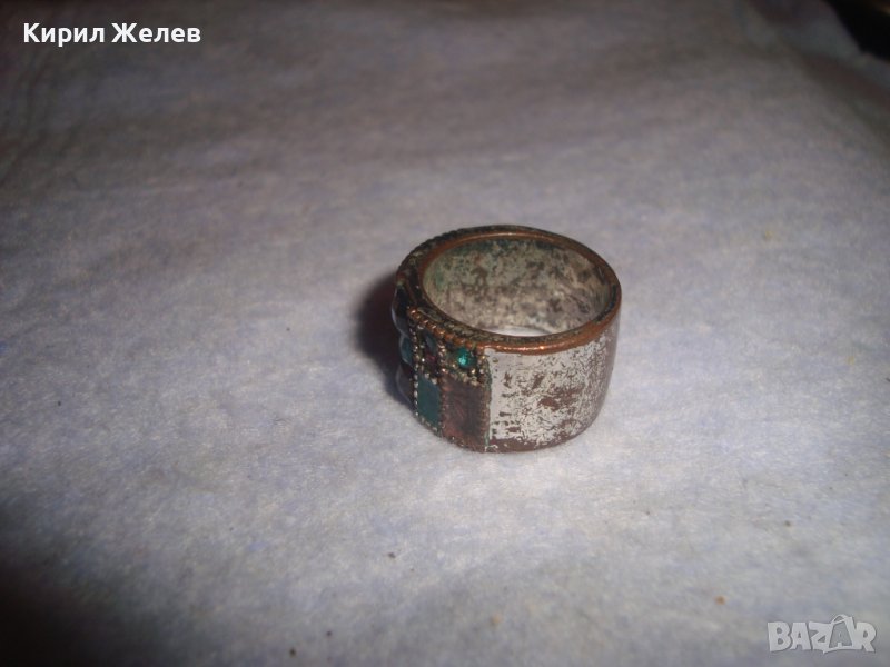 СТАР МЕСИНГОВ ВИНТИДЖ АРТ ПРЪСТЕН ТИП ХАЛКА с ЦВЕТНИ КРИСТАЛИ и ЕМАЙЛ-ЛАК 20319