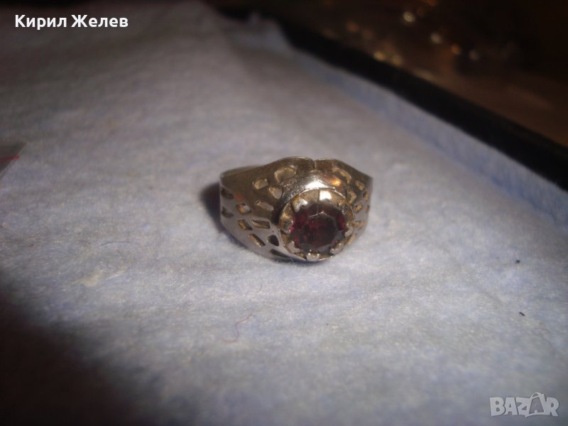 СТАР АЖУРЕН СКЪПОЦЕНЕН РЕГОЛИРУЕМ РЕТРО АР НУВО ПРЪСТЕН с КРАСИВ ГРАНАТ МЕСИНГ РЪЧНА ИЗРАБОТКА 17513