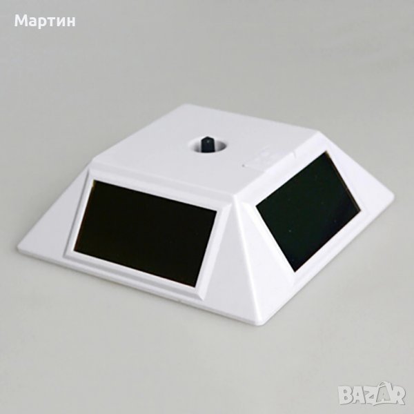 Соларните панели генерират електрическа енергия, която задвижва мотора на вятърната турбина и перките се въртят.