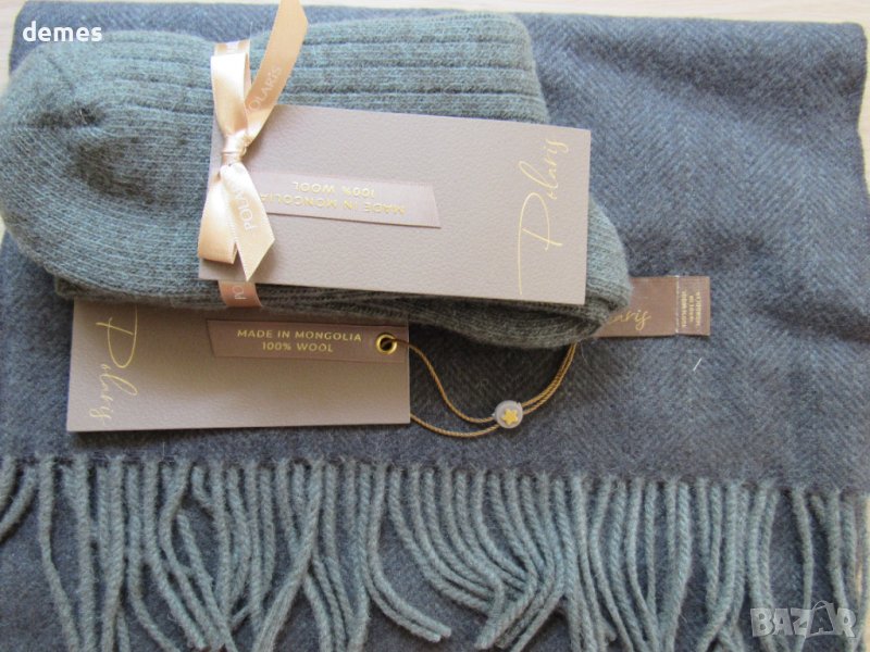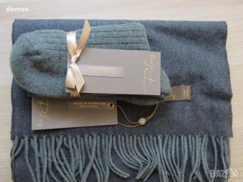 Изключително фин комплект от мъжки шал и вълнени чорапи в елегантнен антрацитен цвят.