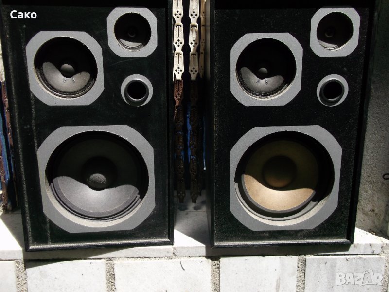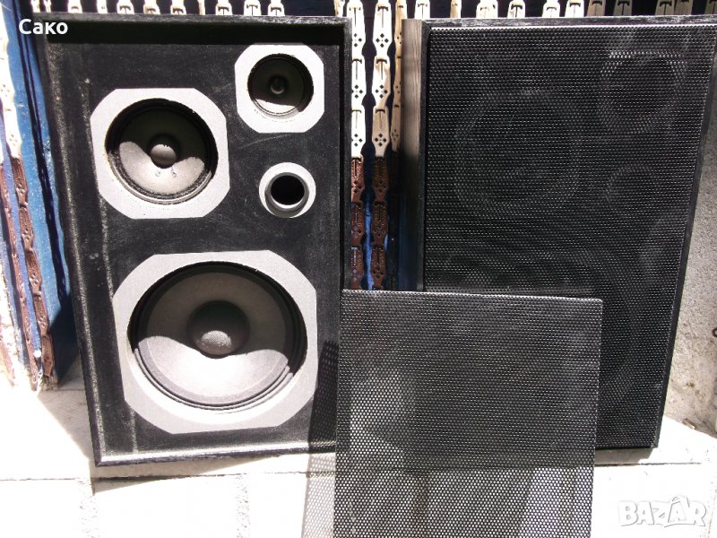 Продавам тези безименнни 3 лентови тонколони, внесени от Германия и закупени от мен преди години, защото имах ресивър работещ с минимум 8 Ohm говорители. Кутиите са в черен фурнир и черни метални грилове, изглеждат запазени и свирят прилично. Нямат марка, нито спесификации, но както писах са 8 Оhm и като ги гледам с вероятна мощност от 30W. Тъй като на басовите говорители гофрите се разпаднаха, ги подмених с някакви български 8" говорители. Старите говорители също са добавени в предложението, ако на някой му се занимава или знае, как да ги ремонтира? Добавил съм в кутиите и допълнително вата за по-добро звучене.