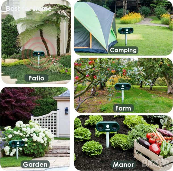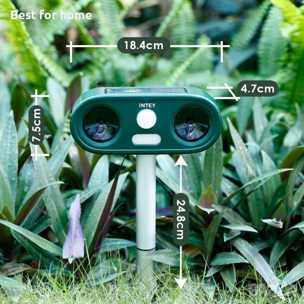Солорна и визуална аларма – Репелерът се отървава от животни чрез излъчване на комбинация от ултразвукови и мощни мигащи LED светлини, например: котки, кучета, катерици, елени, мечки, птици и т.н. Той е необходим спътник за защита на вашата градина.