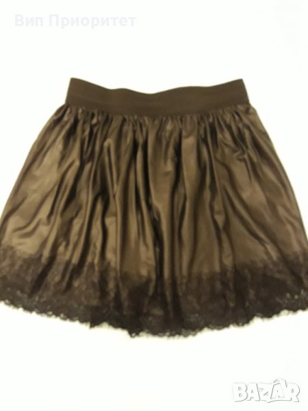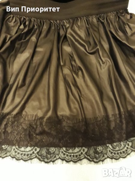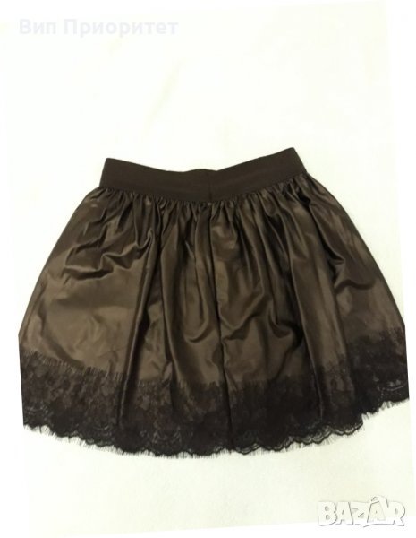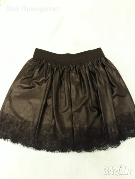 Къса кожена пола с коприна и дантела, супер модерна и луксозна, ластичен колан на кръста, богато раз → Обява 37446431