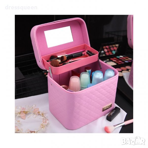 Благодарение на дизайна си, този несесер побира огромно количество козметика, предпазва я от повреждане, осигурява прегледност и лесно намиране на търсеното. Освен това, разполага с вградено огледалце от вътрешната страна на капака, стабилен двупосочен цип и удобна дръжка за пренасяне.