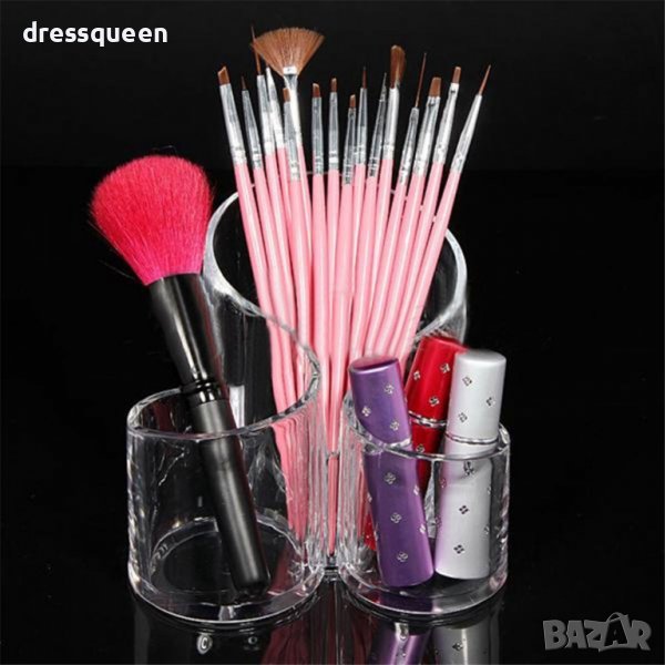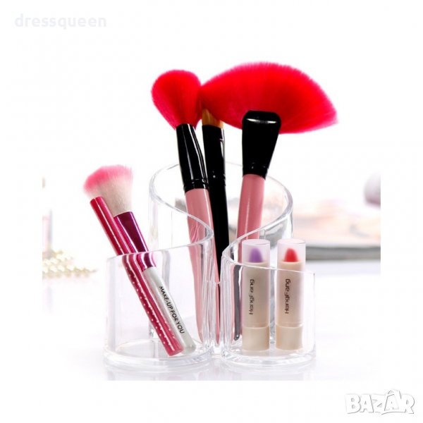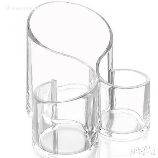 Органайзер за бюро или тоалетка, изработен от висококачествена прозрачна пластмаса.