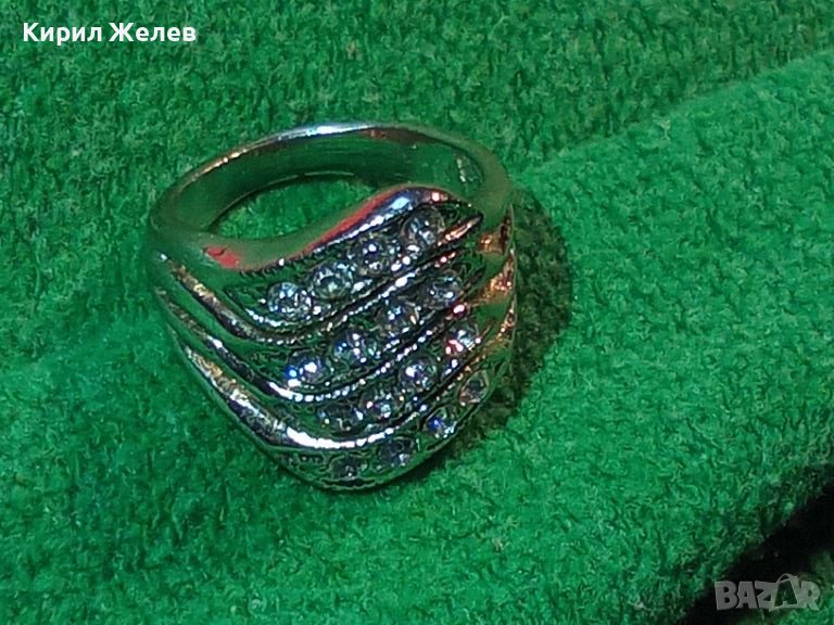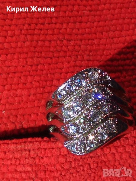 ПРЕКРАСЕН КРИСТАЛЕН ФЕШЪН СТИЛЕН ПРЪСТЕН с БЯЛА ПОЗЛАТА 4235