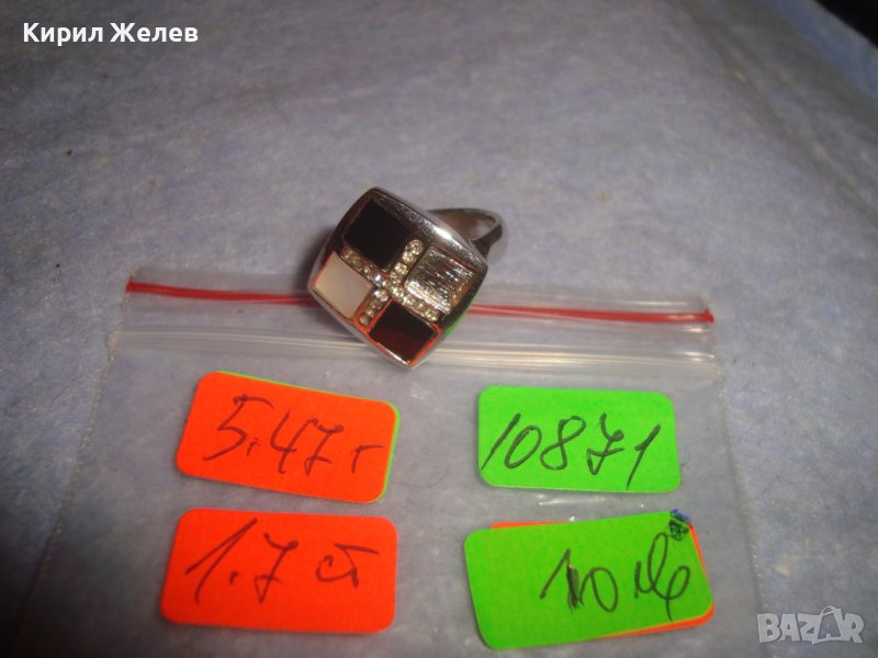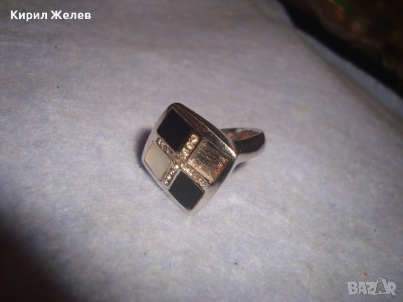 СТАР ПОСРЕБРЕН СТОМАНЕН НЕРЪЖДАЕМ МОДЕН АРТ ПРЪСТЕН с КРИСТАЛЧЕТА 10871