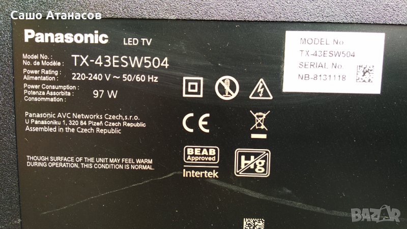 Panasonic TX-43ESW504 със счупена матрица ,TNPA6382 1P ,TNPH1181 2A ,6870C-0532A ,N5HBZ0000120