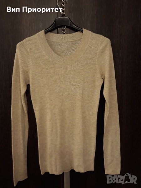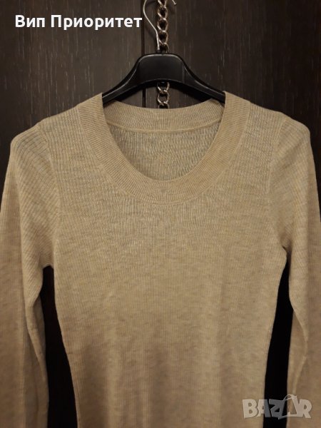 Плетена сива блузка с дълги ръкави, мека, комфортна, вертикален
