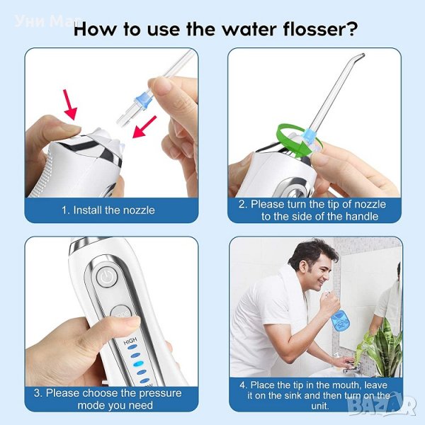 Зъбен душ, Електрически преносим зъбен душ, четка за зъби, почистване на език, брекети → Обява 37456169