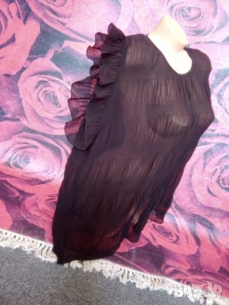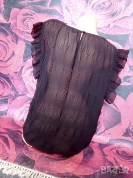 Черна феерична широк модел блуза с къдри на раменете от шифон ХЛ → Обява 37456273