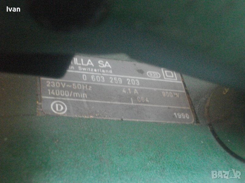 ОПИСАНИЕ на зелено ренде 450 вата - 82 мм нож - цена 199 лв - швейцарско - Bosch PHO100. Оригинално швейцарско електрическо ренде - абрихт, полупрофесионален модел на Бош. Марка и модел на машината - Bosch PHO 100. Производство - оригинално Швейцария - Made in Switzerland - вписано на маркировките. Машината е с много запазен външен вид, и техн. състояние - ОТЛИЧНО. работи много добре, бързо, мощно, без никакво искрене на ниво четки/ротор/статор, и без никакви смущаващи вътрешни шумове. По ножовете няма никакви наранявания. Мощност на мотора - 450 вата, обороти - 19 000 об./мин. Защита - 2,2 ампера. Ножове - големи размер 82 мм.Поставени ножове на машината - два броя, оригиналните швейцарски. Автостоп на спусъка. Работна ширина - 82 мм. Стружуване регулация - 0 -1,0 мм.Фалц 8 мм. Ремък - оригинален на Бош, швейцарски. Захранващ кабел - 3 м. Вградено място в корпуса отзад за ключ шестен. Оригиналният шестограм е наличен там.