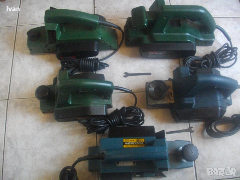 Масивни, качествени електрически рендета - машина хобел, синя професионална и зелена полупрофесионална серии на Бош, швейцарско и немско оригинално висококачествено производство. Машинитие са с различна мощност и на различни цени. Размер ножове - различен /74 мм - 82 мм/.Всички са в ОТЛИЧНО техническо/работно и визуално състояние.