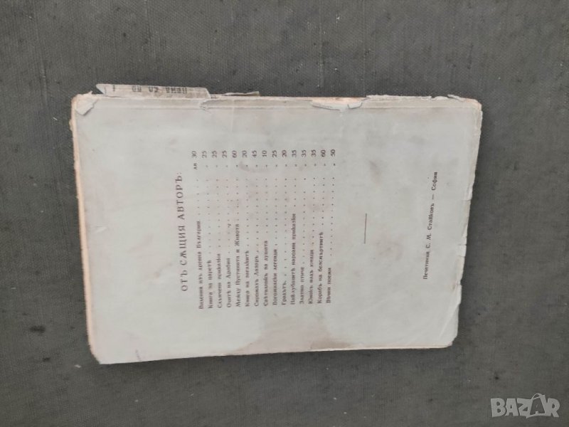 Печати от библиотека .Оръфана доста ,разделя се на няколко части,инвентарен номер на корицата