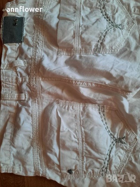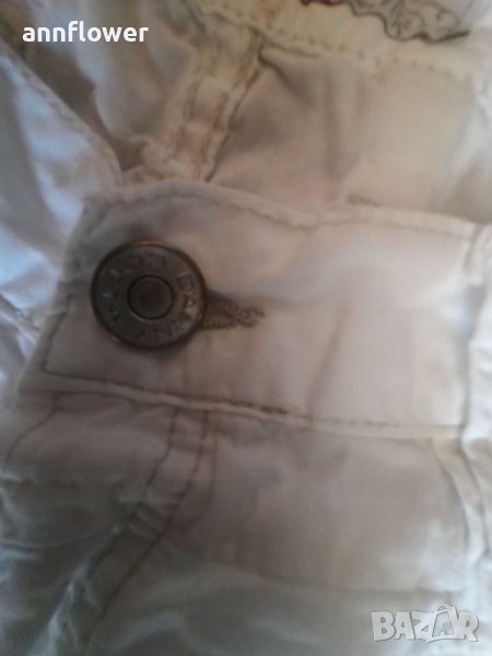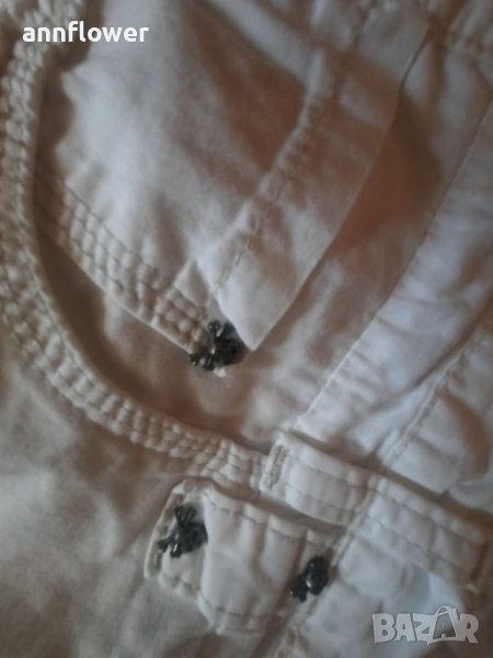 Панталона е като нов и оригинален. Цвят бял размер 34 L. Дължина 68см, ширина на колана едностранно измерен 45,5см, тоест за талиядо 91см. Дълбочина отпред 23, отзад 36см