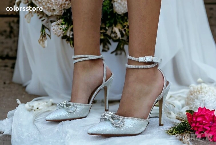 Сандали на ток - бял брокат - BY22 → Обява 37463594