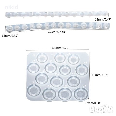 14 размера пръстен халка и камъни силиконов молд форма калъп смола ръчна изработка → Обява 37463684