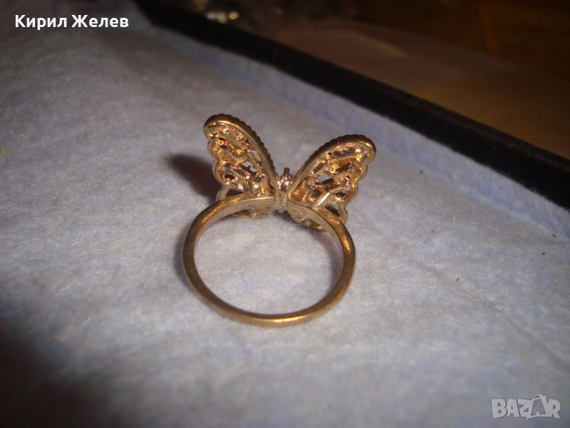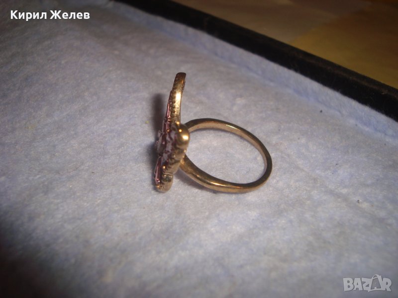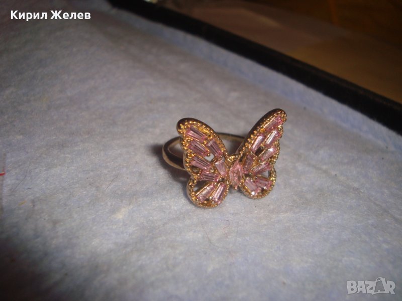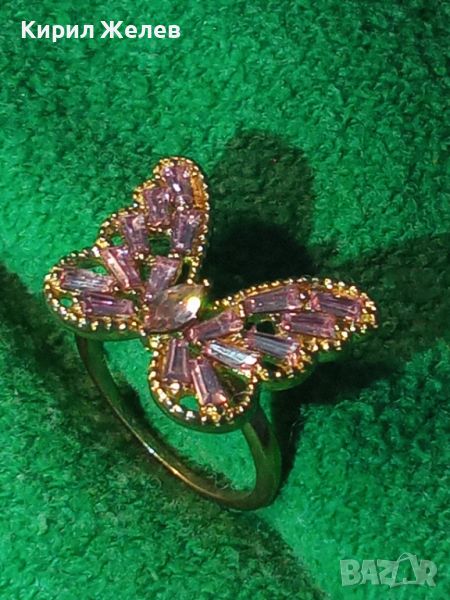 РАЗКОШЕН ПОЗЛАТЕН ФИГУРАЛЕН АЖУРЕН АРТ ПРЪСТЕН ПЕПЕРУДА с ПРЕКРАСНИ РОЗОВИ ФАСЕТИРАНИ КРИСТАЛИ 27704