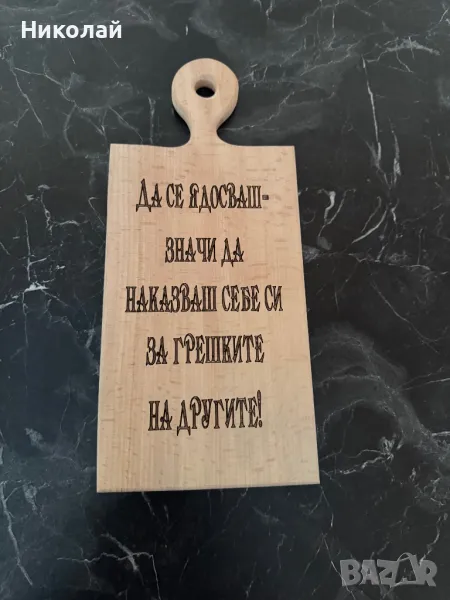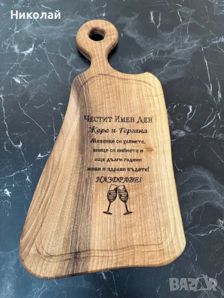 Лазерно гравиране на дъски закупени от нас, както и на всички наши, дървени изделия.