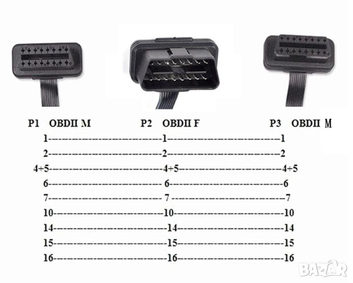 16 Pin OBD-II Мъжко Стандартен 16-пинов Конектор Кабел Порта за Компютърна Диагностика на Автомобила към 2 Женски