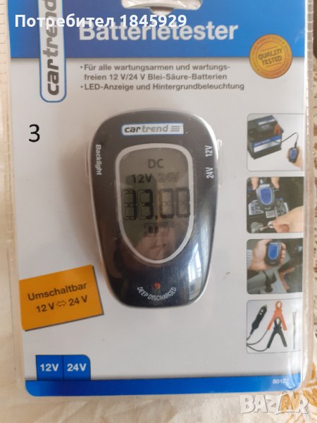 3. Нов уред Batterietester cartrend 80127 12V-24 V.Тестер за всички оловно- киселинни батерии и за измерване на автомобилни акумулатори. Цена- 20 лв.