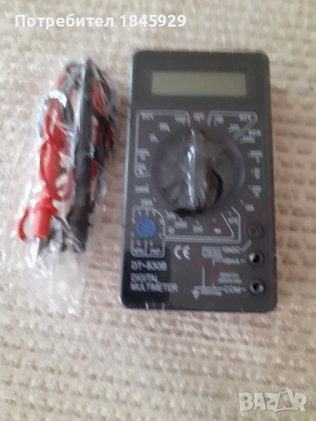 2. Нов цифров мултицет DT 830B Обхват за измерване на постоянно напрежение , променливо напрежение , постоянен ток,съпротивление, проверка на диоди и транзистори .Захранване: батерия 9V .Индикатор за слаба батерияРазмер: 126x70x28мм .Тегло 140гр. Цена- 8 лв.