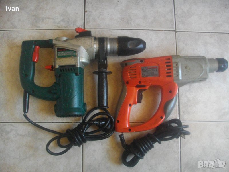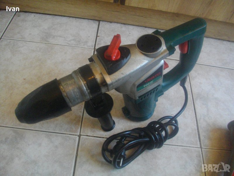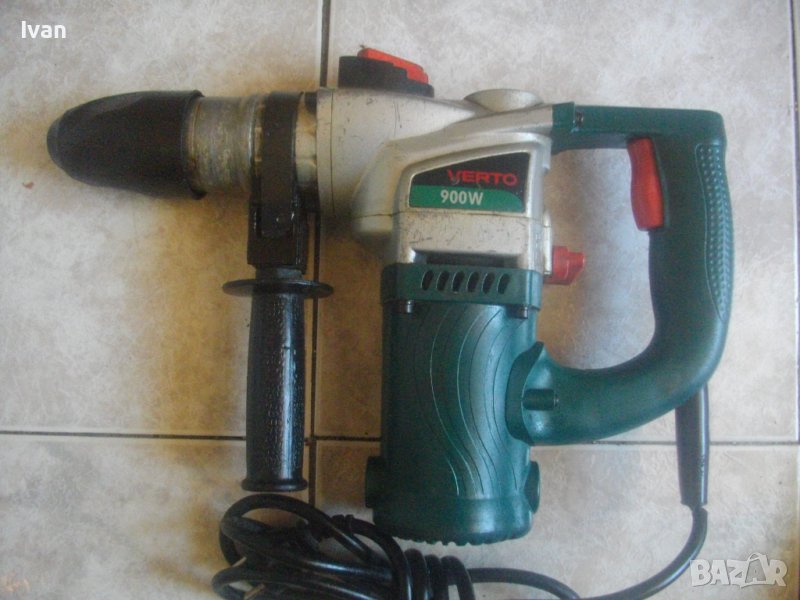900 ватов профи перфоратор - къртач, полска сглобка модел на Верто. Марка и модел - VERTO 50G387. Производство - Полша. Много запазен външен вид. Мощност на мотора - 900 вата, обороти празен ход пробиване - 0- 86.50 об./мин. Трептения при къртене - 4100 в мин. Сила на удар - 3,5 джаула. Паотронник - стандартен SDS PLUS 26 мм. Две позиции - комбнирана и функция къртене -удар - символ чук. Два ключа за превключване позиции. Четки - външни. Налична оригиналтата предна дръжка от твърда пластмаса, със стоманена скоба - държач, разглобяема.