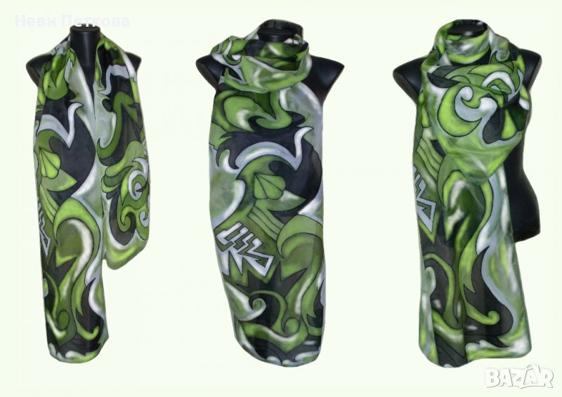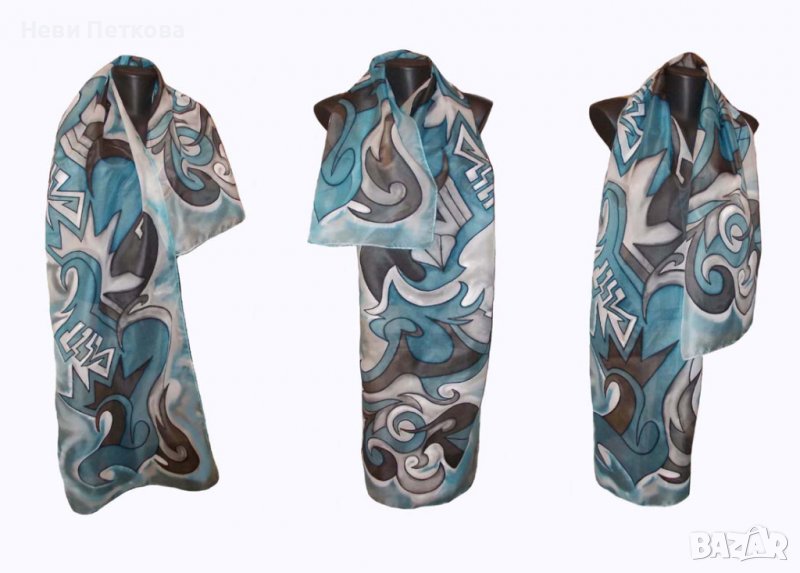 Рисуван копринен шал АБСТРАКТНО В БОРДО → Обява 37468730