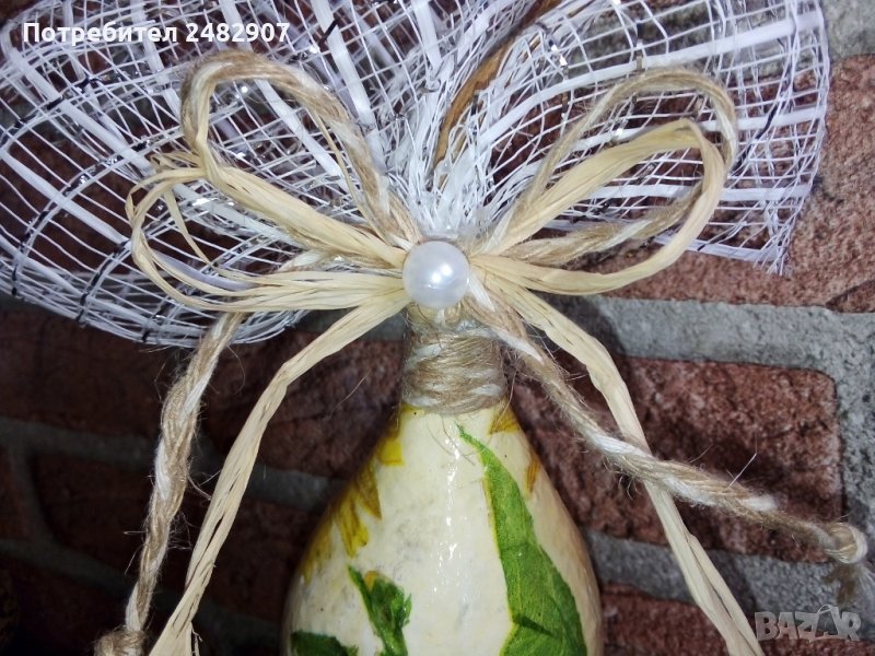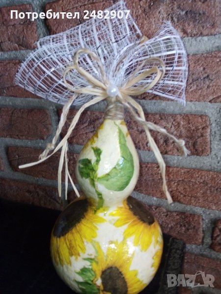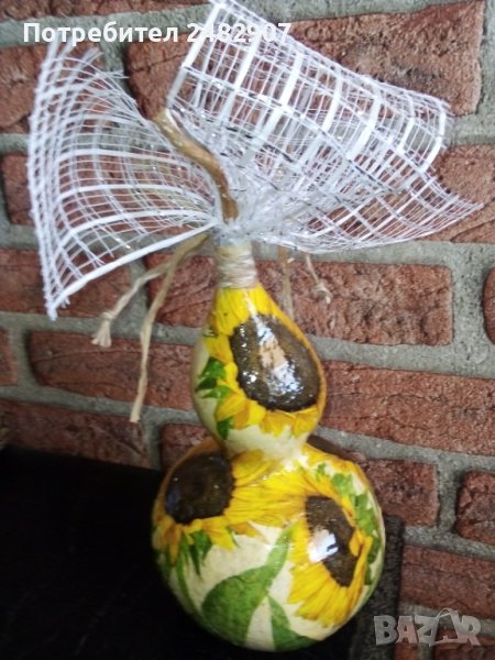 Ефектна декорация за дома или офиса. Ръчно изработена украса от естествена кратуна и техника "декупаж". Идеална и за подарък. Височина - около 27 см, ширина в долната издута част - около 11 см.
