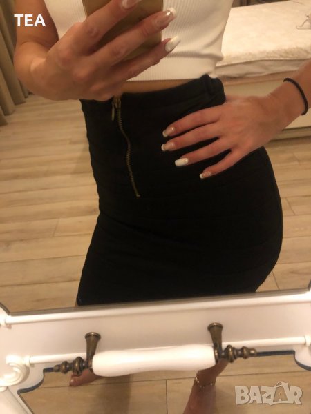 Дамска черна пола с висока талия с златист цип.Материята е много стегната.На марката Toi&Moi