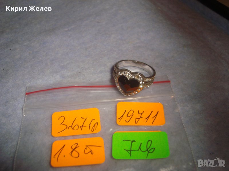 СТАР СЪРЦЕВИДЕН ПОСРЕБРЕН МЕДЕН АРТ ДЕКО ПРЪСТЕН с КРИСТАЛИ 19711