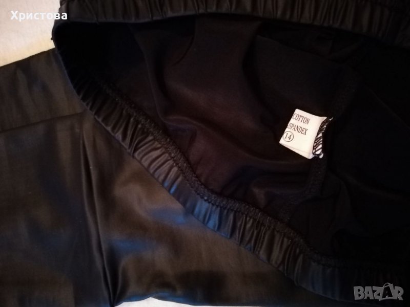-Черен еластичен клин с кожен ефект, с шев на 12 см от долния край и ластик в талията. Нов, без етикет.