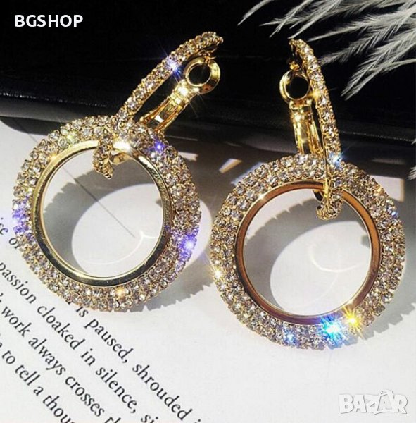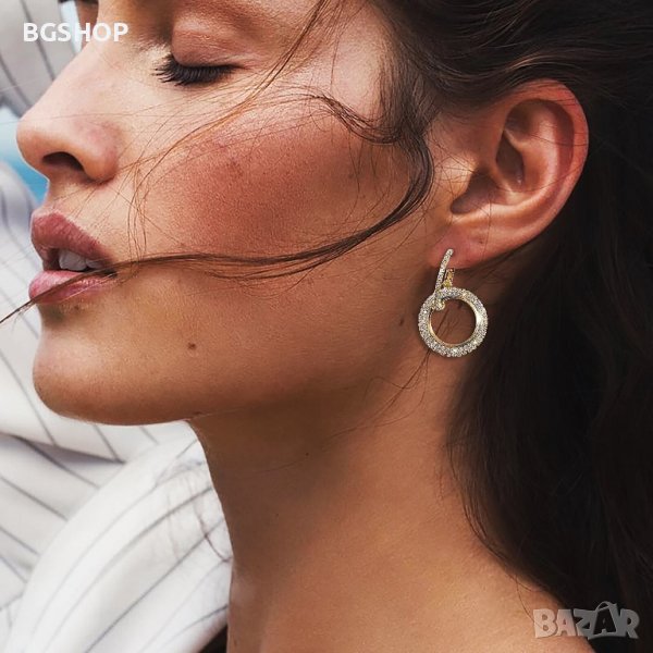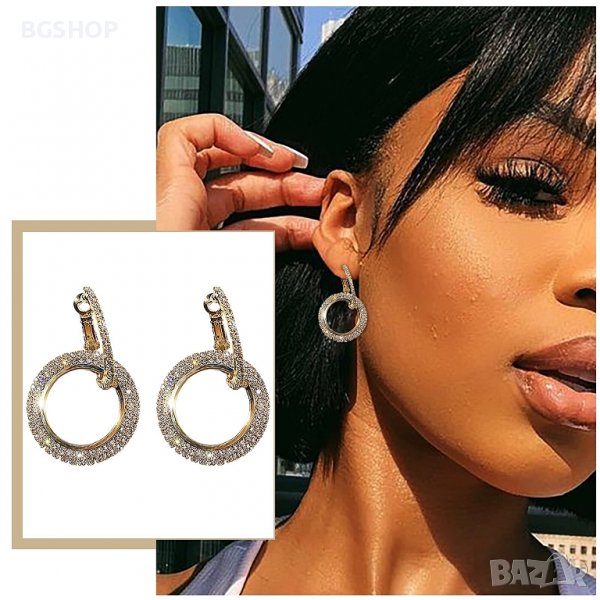 Стилни дамски обеци с кристали тип двойни халки. Прекрасни за официални поводи или за ежедневна употреба .