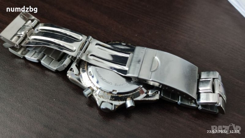 Доста луксозен мъжки часовник закупен от Гърция за 210 евро има следи от износване всичко съм снимал часовникът е с много висококачествен механизъм миота абсолютно всички стрелки всичко се движи уникален безупречен механизъм много красив дизайн метална верижка датник секундарник всичко цената която му търся посочената цена и мисля че напълно реална предвид неговото състояние затова давам такава ниска цена часовника до ден днешен се продава на цена от 400 лв български пари в Гърция