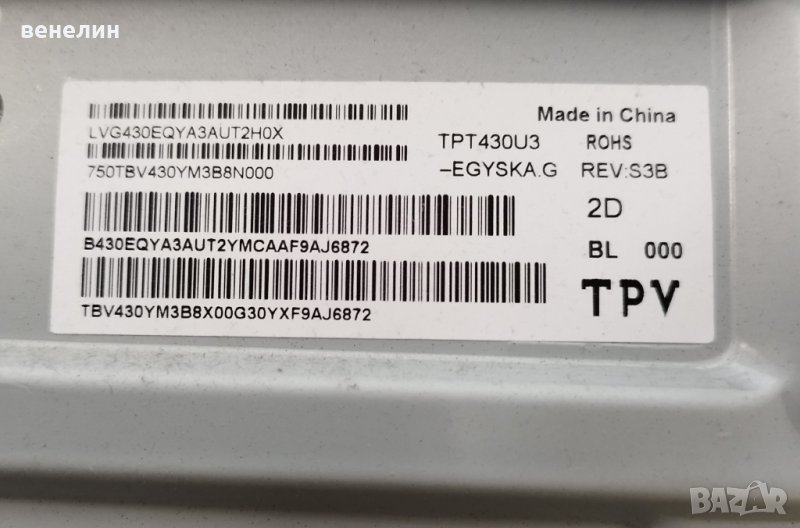 715G9907-M01-B03-005G , 715GA052-P01-000-003H 43PUS6554 12 СЪС СЧУПЕНА МАТРИЦА, снимка 1 - Части и Платки - 37475977 715G9907-M01-B03-005G , 715GA052-P01-000-003H 43PUS6554 12 СЪС СЧУПЕНА МАТРИЦА, снимка 2 - Части и Платки - 37475977 715G9907-M01-B03-005G , 715GA052-P01-000-003H 43PUS6554 12 СЪС СЧУПЕНА МАТРИЦА, снимка 3 - Части и Платки - 37475977 715G9907-M01-B03-005G , 715GA052-P01-000-003H 43PUS6554 12 СЪС СЧУПЕНА МАТРИЦА, снимка 4 - Части и Платки - 37475977 715G9907-M01-B03-005G , 715GA052-P01-000-003H 43PUS6554 12 СЪС СЧУПЕНА МАТРИЦА, снимка 5 - Части и Платки - 37475977 715G9907-M01-B03-005G , 715GA052-P01-000-003H 43PUS6554 12 СЪС СЧУПЕНА МАТРИЦА, снимка 6 - Части и Платки - 37475977 715G9907-M01-B03-005G , 715GA052-P01-000-003H 43PUS6554 12 СЪС СЧУПЕНА МАТРИЦА, снимка 7 - Части и Платки - 37475977 1/7