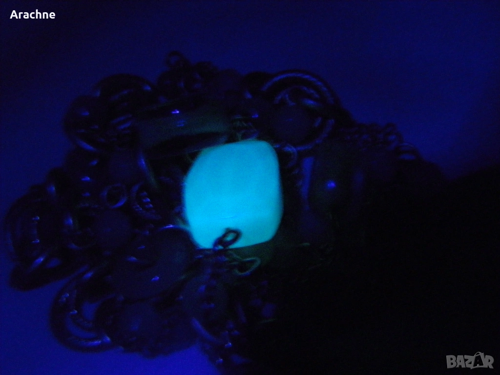 Антикварен позлатен гердан от Fenton glass с ураново и жадеитово стъкло, 50те → Обява 37476024