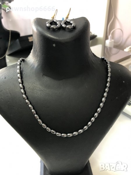 9 Хематит 42 см колие 5 см обици с куката - 10лв