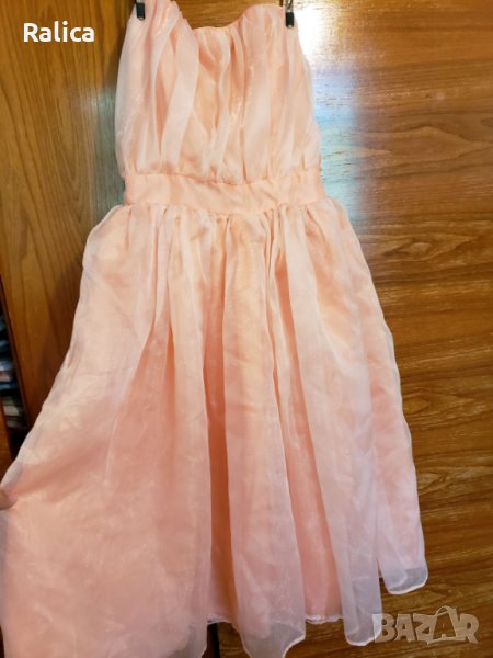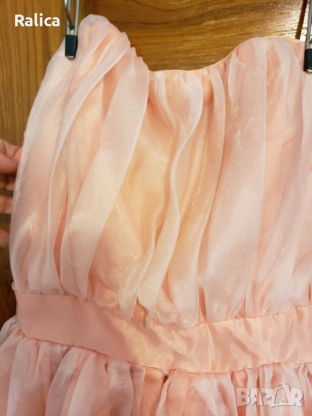Красива рокля от шифон в прасковен цвят. На живо е невероятна - стои много богато! Облечена е само веднъж и е без забележки.