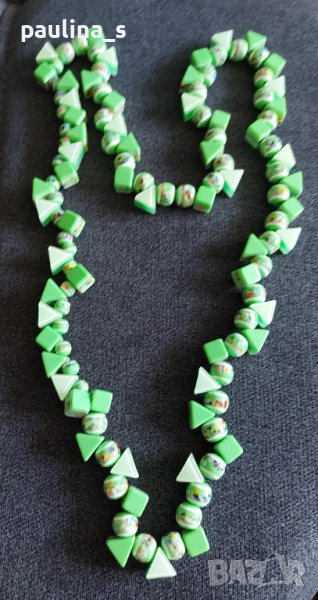 1️⃣. Колаж / Зелен гердан. Цената е крайна 14,99лв / 7,5 евро. Зелен дълъг гердан с геометрични мъниста на цветя. Дължина 90см.